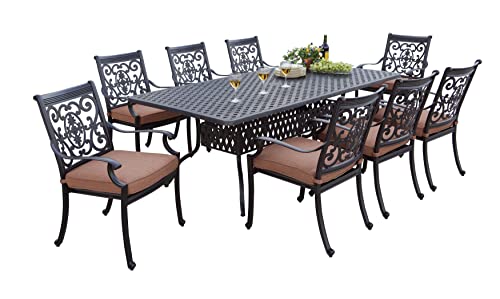 Cast Aluminum Outdoor Patio 9 Piece Extension Dining Table Set
